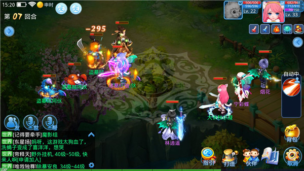 半自动战斗,解放双手随时聊。便捷任务全自动,一键挂机只等PK活动杀杀杀;