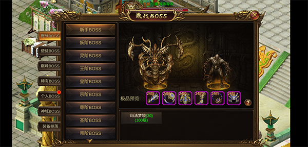 做完日常后我们就可以去激战boss中刷装备了,刷boss之前,我们一定要加入一个行会,不仅能解锁行会技能,还可以在行会中获取各种福利,比如行会仓库,我们打到多余的装备可以放进去,获取贡献,换取其他自己需要的装备,同时,还可以换取到行会中的大佬放在仓库中的装备,绝世神装,指日可待。想长期玩且玩的舒服的兄弟,可以选择将充值金额累计到30元,开服3天内充值累计30元,我们就可以获得灵宠,灵宠可以解锁自动拾取功能,挂机必备!有时间就可以上来挂机打boss,分分钟爆极品装备,不用的装备可以分解,获得大量经验和强化石。多件同样的装备可以合成龙装、神龙装,回收的时候应注意不要回收到可以合成龙装的装备。刚开服时高阶装备还可以兑换古玉!刷boss还可以获取领主积分,兑换大量材料,还可以兑换珍稀坐骑,稀有时装。