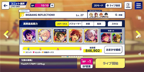 假设今天我要打「BIGBANG REFLECTION!!」的属性为「Flash (黄色)」,那原则上,我选择成员的条件就以「Flash属性」的卡为准。