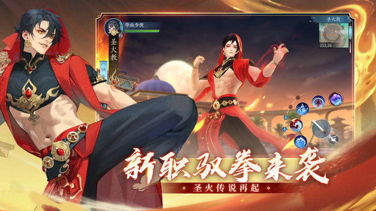 1、全新门派来袭!——掌门洛羽珈原为明教圣女,为寻教中遗失的圣火令来到龟兹,并遇到了乐舞名家织墨,二人情同莫逆。在龟兹禁地千佛石窟中,洛羽珈发现织墨的师父沙戈在偷习圣火令上的武功,洛羽珈随之与沙戈大打出手,并在织墨的帮助下将其打败。为接替师父的衣钵,织墨自愿余生留在洞中守护千佛石窟的秘密。临别前,她为洛羽珈跳了最后一支舞。待完成教中使命,洛羽珈回到龟兹,将织墨最后一舞与自身武学相结合,并开宗立派。