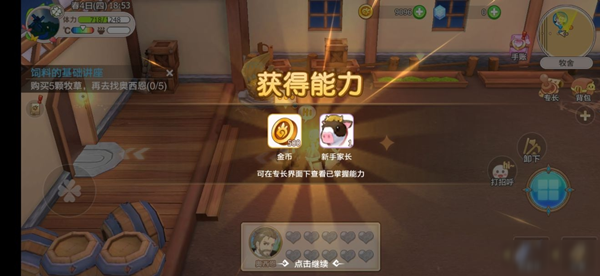 我们从家门口往下走,来到家里的牧舍,进去后看到大叔在等你,好了,开始执行任务吧。