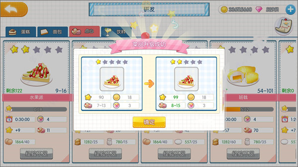 研发完成后的食物在所得经验、贩售价值、制作数量等数值上会有所提升。升到最高品质的话,制作一次的量会比初始品质时多不少呢。