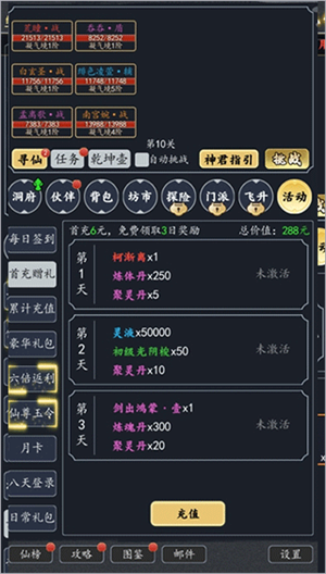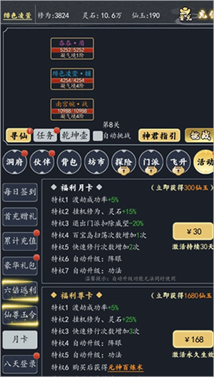 再说一下月卡,自动升级功法和灵根是很划算的,所以平民会玩上战力榜还是挺容易的。