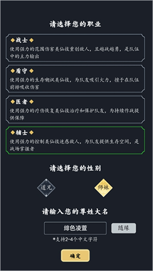 职业选择,选择你喜欢的即可,不过需要和后续的伙伴职业有所搭配。