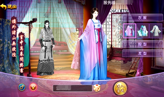 角色创建可以自由选择性别、衣服、脸型、发型。角色名可以用系统随机的名字,或者自己重新编辑名字。(角色名、性别、衣服、妆容都可以在游戏里面更改)