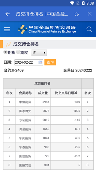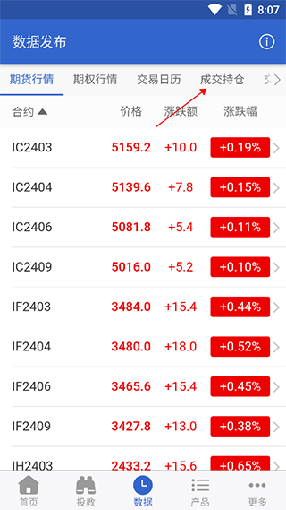 用户可在本站免费获取中国金融期货交易所官方APP,安装并打开后,进入APP的【数据】页面,点击成交持仓。