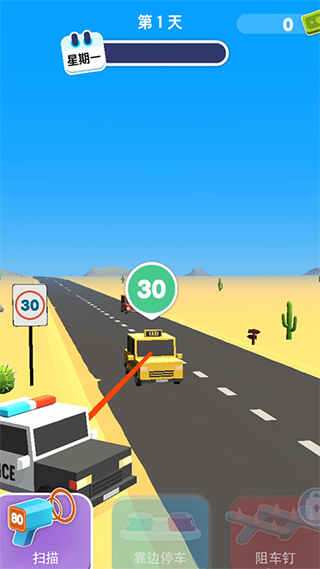玩法方面,以公路上的超速测速为背景,借助仪器对往来的各种车辆进行测速,当遇到超速的车辆后,需要对其进行拦截并作出相应的惩罚,游戏将通过玩家的惩罚方式给出相关的奖励,用于提升自己的装备,更好的服务大众。