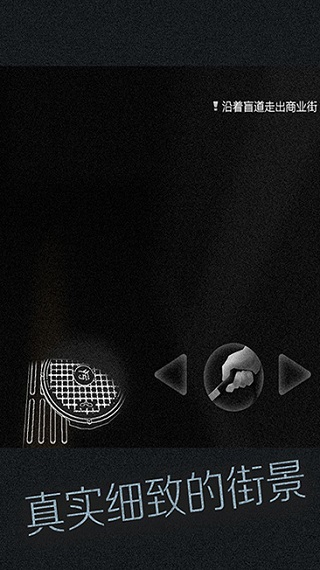 游戏的操作方式也是传统的摇杆+控件的操作方式,左半屏控制移动,右半屏控制方向和交互等,但值得注意的是,游戏的方向控制采用的是控件操作,因为游戏内扮演的盲人触摸操作需要通过触摸屏幕来控制。也许是因为游戏的界面非常的简单,所以双重控件的设置也不会导致整个界面的杂乱。