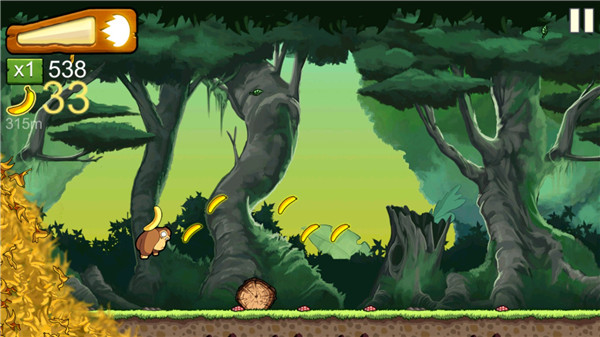 6、奔跑、跳跃、弹跳、在藤条上晃荡,帮助香蕉金刚逃离排山倒海般汹涌而至的香蕉