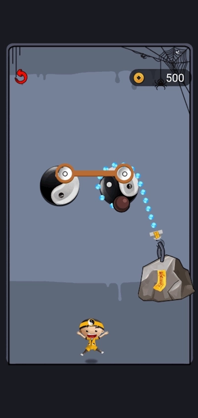 2、游戏是一款闯关解救类游戏,玩家需要利用太极圈将石头抬起
