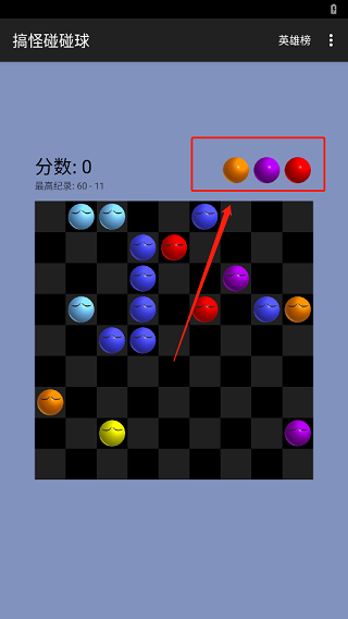 1、打开搞怪碰碰球手机版游戏,先点击要移动的球,然后再次点击指定的位置即可移动;2、将5个相同颜色的球放在一起即可消除获得分数;