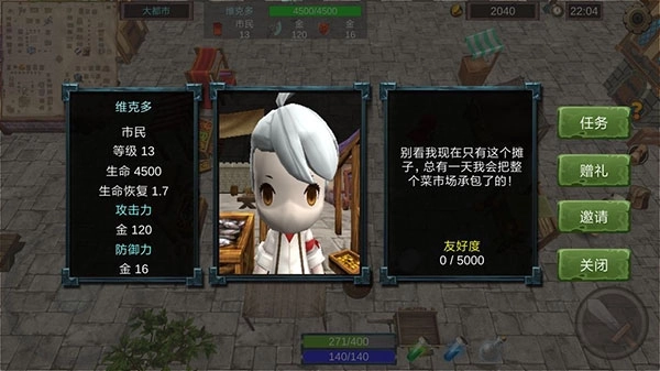 前期如果实在打不过可以带NPC帮忙,低等级的NPC同种族只要等级够就能组队,其他族需要好友度点邀请可以看见他需要什么就送什么就能组队。注意一点NPC血量,过半后他会逃跑。