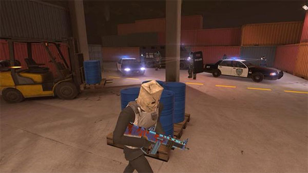玩家主要扮演一个劫匪,主要目标就是去银行等地方掠夺,然后突破重重的封锁,最后等到支援,乘车逃跑,本次关卡就结束了。