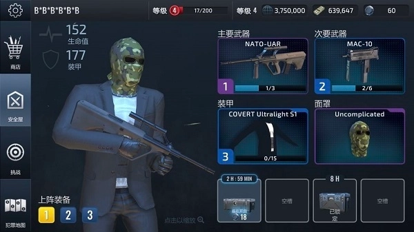 游戏支持玩家自由装扮,装扮主要由主武器、副武器、防弹服和头套组成,