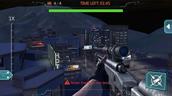 1、进入游戏之后,我们点击右下角按钮即可开始狙击任务。2、通过拖曳屏幕的方式,即可实现枪械瞄准。