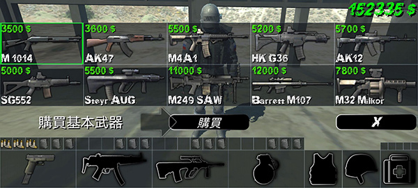 4、选择购买武器,投掷物,防弹衣,头盔、医药包等物资。