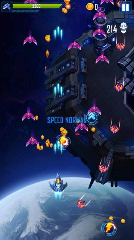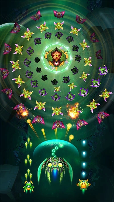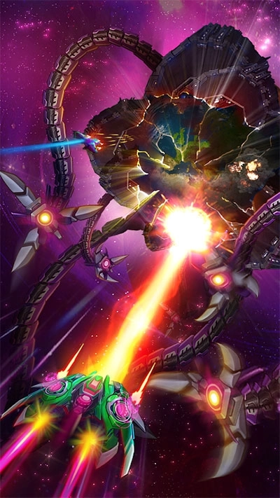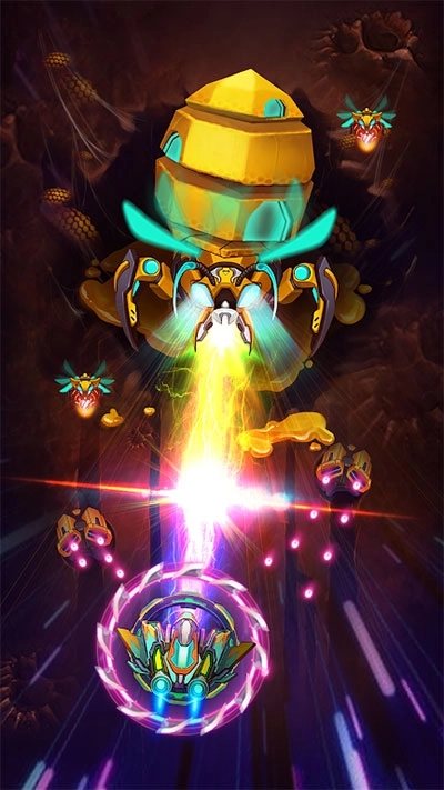 1、触摸屏幕并移动以躲避敌人的攻击,然后回击并摧毁敌人。