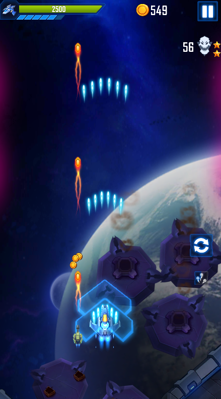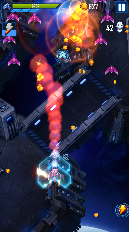 3、收集子弹和设备以升级飞船。