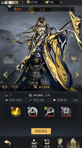 游戏中所有武将前期可以随意升级培养,无需担心浪费资源,可以一键重置资源。6星以后需要根据养成意向培养一队心仪武将,如主公不愿劳神可按照,点将页面的推荐阵容培养。
