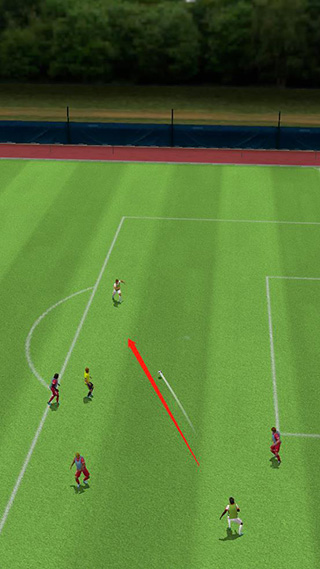 直观简单的从足球所在位置滑动手指去传球、射门,或者划出弧线打出精彩的弧线球越过对方球员的防守。