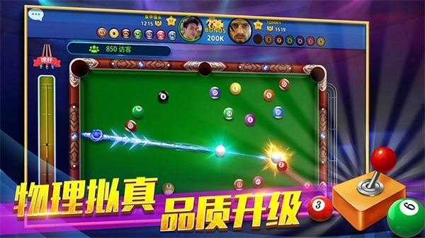 超逼真的台球物理模型,不同材质的3D球桌以及个性化球杆,给你身临其境的击球体验。