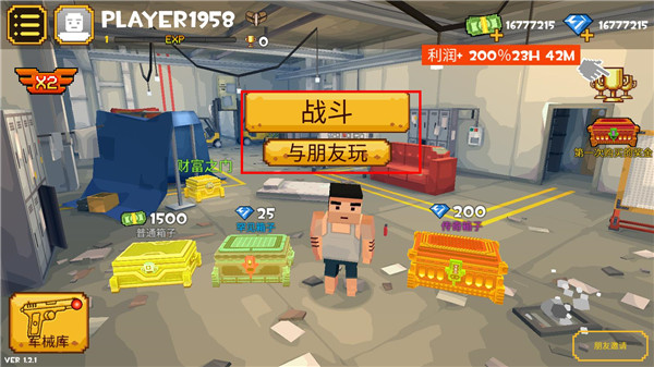 1、下载安装像素躲猫猫游戏后,进入即可自由选择战斗,或是与好友联机等模式;2、通过主页的开箱子,可以开出各种物品;