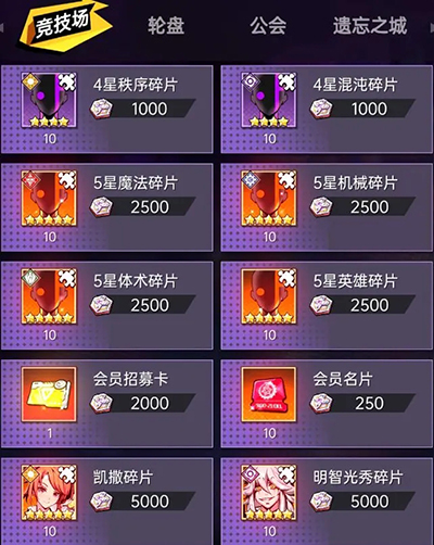 竞技场是每个萌新玩家必会去找玩家切磋的一个地方,从中获取的竞技点是可以兑换五星橙卡英雄碎片、会员招募卡、会员名片等等的物品及资源的,所以平时上线没事的时候是可以去竞技场攒攒竞技点的;