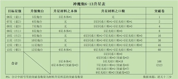 光暗炮和神魔炮6-13星升星所需材料表