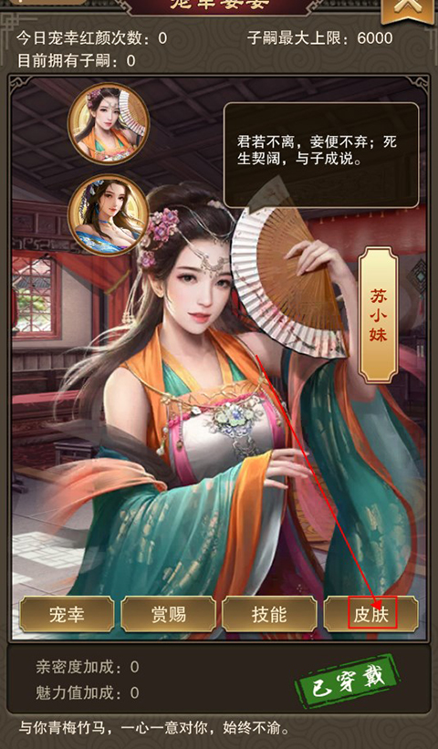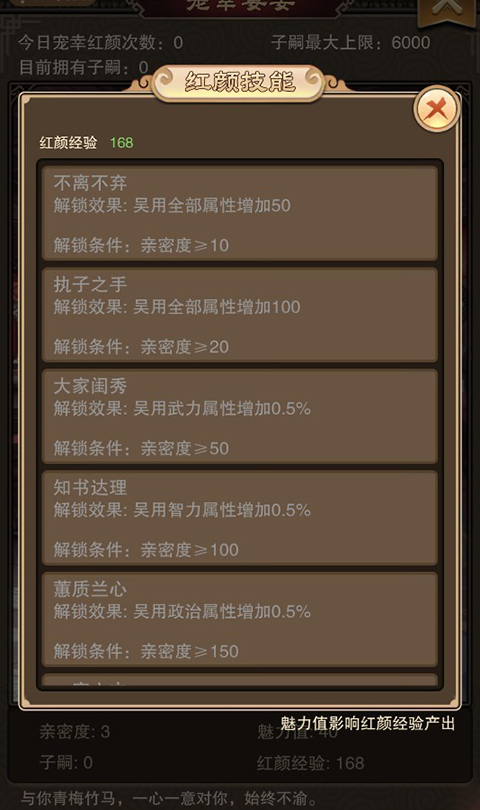 每位红颜都有自己独特的技能,玩家可以通过增加亲密度来提升红颜经验等级,增加技能效果。