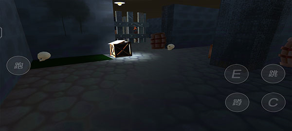 8、右侧有跳和下蹲,E代表拾取,场景很大,可以自由探索,万一被邦尼发现了,就赶紧跑回这个囚笼里,就可以躲避一阵子。