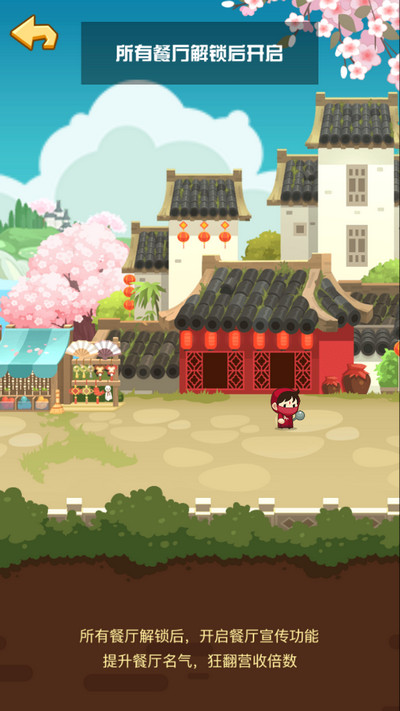 6、例如,当玩家解锁所有的中餐厅后,可以开启餐厅宣传功能,在这里提升名气,将现有餐厅的收益全部翻倍。