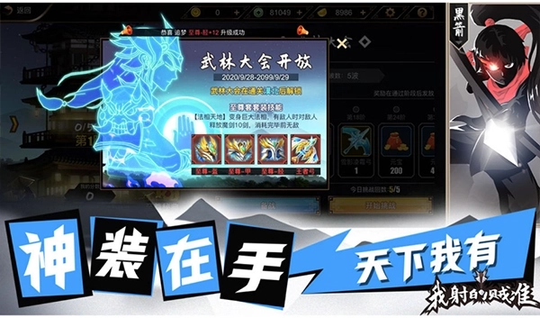 5、完成任务目标之后就能获得金币,你可以用金币来升级自己的弓箭等级,不断提高自己的能力;