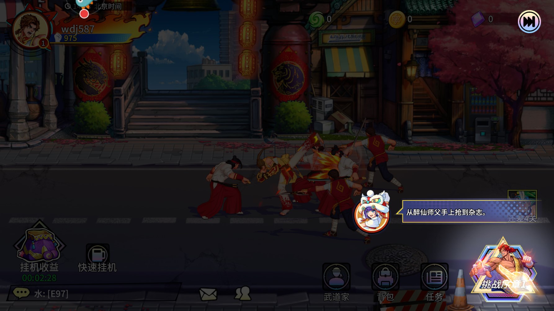 2、先过一段剧情,然后就会指引我从醉仙师傅手中抢到杂志,准备开干