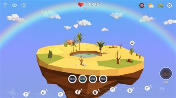 4、绿洲等级提升时地形会发生改变,还会出现树木和动物之类的新要素。通过音符演奏,能和游戏里的各种对象一起互动。