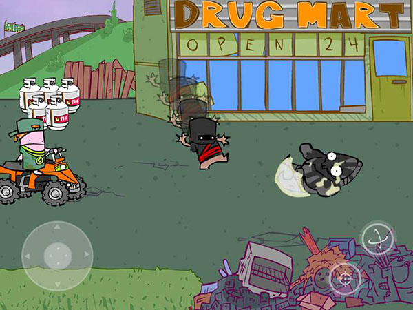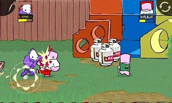 又有好多小朋友来了!其中有一个黑色西装系蝴蝶领带的小子(血量高于正常小朋友)会拿一把玩具枪射你(子弹是马桶把子?),被打中会伤血! 提示:停在右上方的除草机也可以当炸药使哦!