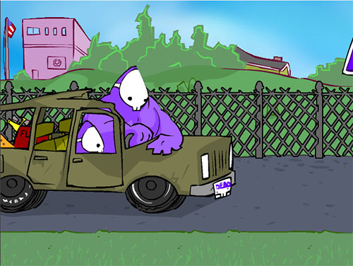 这里有五个小朋友准备过马路(当然,他们永远也不会过去的), 他们一动不动站在那里反而更好打。 提示:从公路上开来的汽车具有较强的攻击性,当然,也伤小朋友。