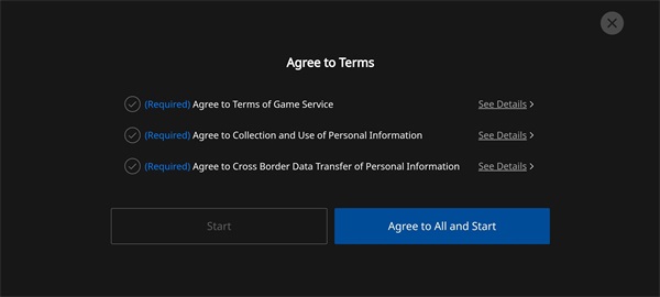 4、阅读所有隐私条款后,点击“agree to all and start”即可注册成功