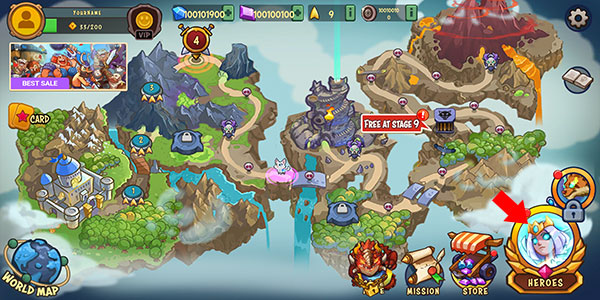 1、游玩完成新手教程之后即可进入游戏主界面,我们点击右下角进入英雄界面