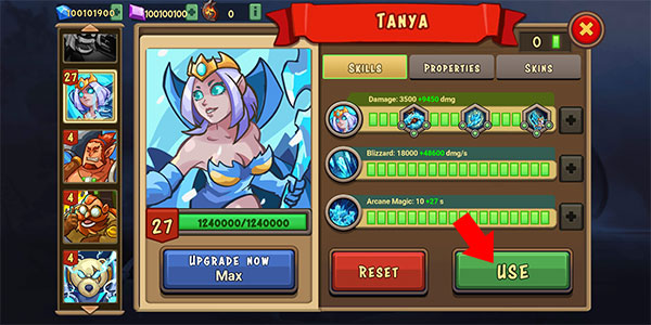 3、当选择完毕后,点击英雄右下方的【use】按钮即可切换英雄