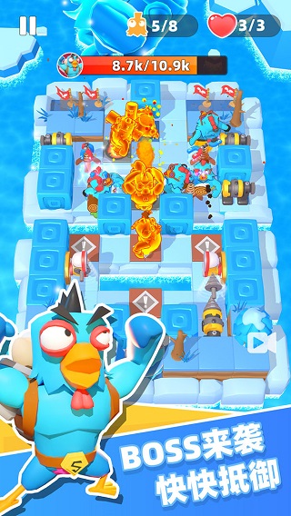 还有一个更强大的鸡老板会攻击你,用更多的血来抵抗游戏还是很刺激很有趣的。