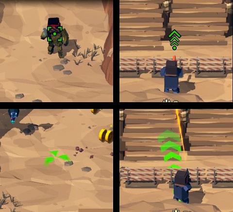 如上图,通过不同的准星动画可以分辨出武器的瞄准方式。左上为自动瞄准,右上为攻击正前方,左下为攻击点击位置,右下为攻击拖拽位置。