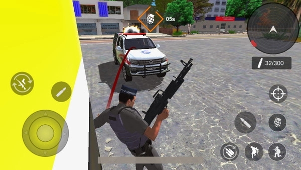 7、看到不法分子,直接下车!掏出手榴弹来一发,然后拿枪扫射!