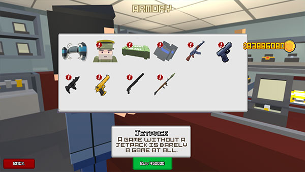 是一款像素沙盒类射击闯关小游戏,该游戏在玩法上有点类似于罪恶都市,有着超高自由度,游戏内不仅为玩家提供超大卡通场景的地图,还加入了多种形态各异的小人和各种武器道具,在这里你可以自由建立帮派,发动战争策略,在大城市抢劫,成为帮派的大佬收取保护费。起初你的帮派规模并不会很大,这期间你需要去收集一定的装备和技能,通过不断的战斗来慢慢让其强大起来,最终成为这个城市的霸主。