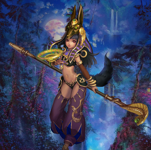 攻击型英雄,擅长攻击弱化敌人,使其无法被治疗。阿努比斯是古埃及的亡灵接引者,为了对抗邪神,与白起一同追随冒险者一同战斗。