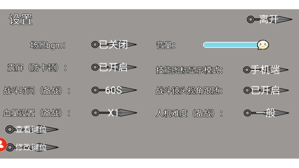 2、点击右上角设置按钮,玩家可调整游戏音量、键位等设置;