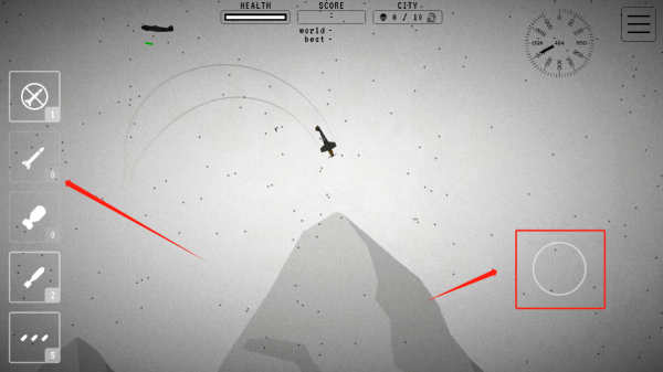 4、通过右下方的圆控制轰炸机飞行方向,右侧可选择发射子弹对其他轰炸机进行轰炸;