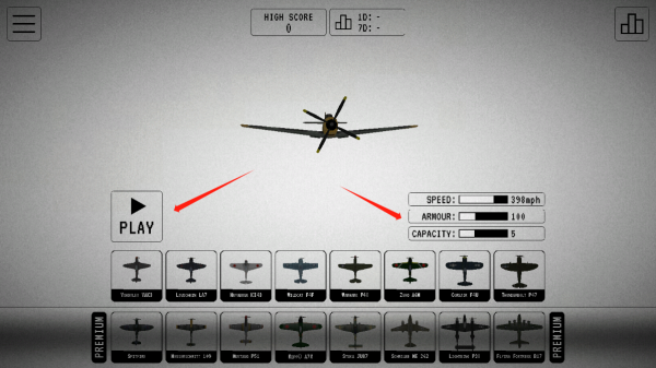 3、可根据轰炸机的属性选择合适的轰炸机进入游戏,选好之后点击play;