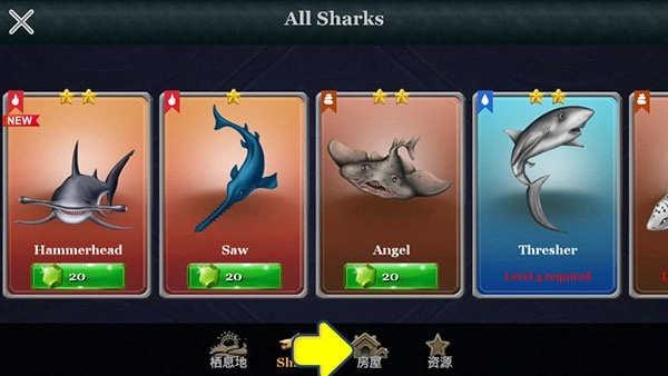 2、栖息地,鲨鱼,房屋,资源的建造生成,为鲨鱼的生存营造更好的环境,而且这些栖息地中的鲨鱼还能为你带来不错的收益哦。