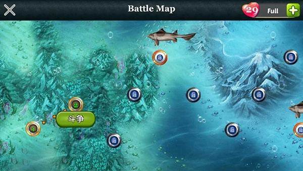除了上述玩法外,游戏主要以推图为核心,通过策略性地派遣鲨鱼进行战斗。