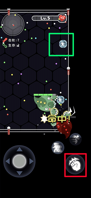 1、下载安装好拳来拳往正版游戏,打开进入游戏选择一个人物开始比赛;2、进游戏后红色方框内的按钮是攻击,地上经常散落着的是瞬移道具(比如绿色方框内的道具),记得捡起来;